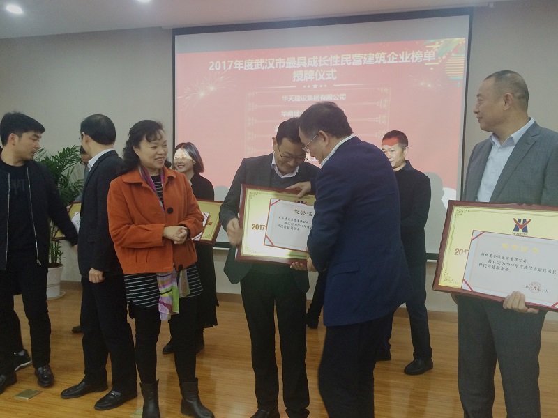 11月6日,武漢建筑業(yè)協(xié)會(huì)召開“促進(jìn)武漢市建筑業(yè)高質(zhì)量發(fā)展座談會(huì)(第三次)暨最具成長(zhǎng)性民營建筑企業(yè)授牌儀式”。會(huì)上發(fā)布了“2017年度武漢市最具成長(zhǎng)性民營建筑企業(yè)”榜單,共有21家企業(yè)上榜,天馬建設(shè)集團(tuán)位列其中。